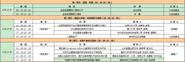 会议以“科学研究与产业发展”为主题,安排了大会主题报告、虫草营养与消费大讲堂、虫草产业化交流会、虫草研究及开发高峰论坛、冬虫夏草产业高峰论坛、“虫草产业发展金湖宣言”专题会议、虫草产业企业家论坛、参观、展览等多个主题鲜明、针对性极强的环节,会议还邀请了业内专家学者,围绕虫草产业存在的热点问题及产业发展难点展开研讨并倡议形成“虫草产业发展金湖宣言”,提交给国家有关部门,呼吁公众正确认识虫草,引导虫草产业健康发展。